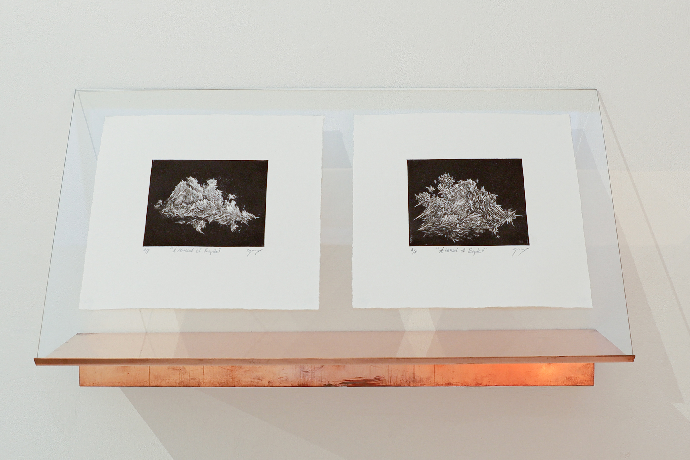 ‘After the Storm’, and ‘Two Moments of Respite’, Mezzotints on Hosho Paper, Copper, Glass, (300x70x310mm), (560x70x310mm)
